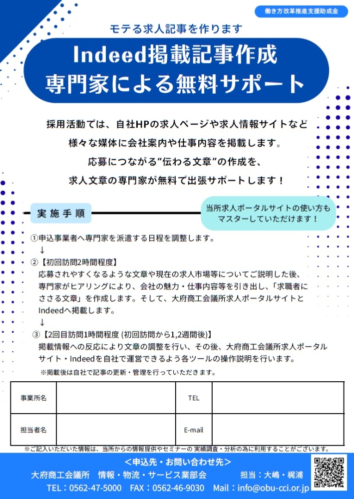 中小企業向けの求人活動支援事業として、専門家による「求職者が応募したいと思ってくれる求人文章」の作成を行います。