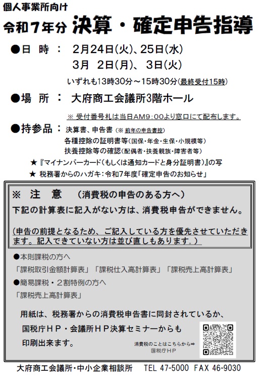 令和7年分 決算・確定申告指導会(2/24・25・3/2・3)