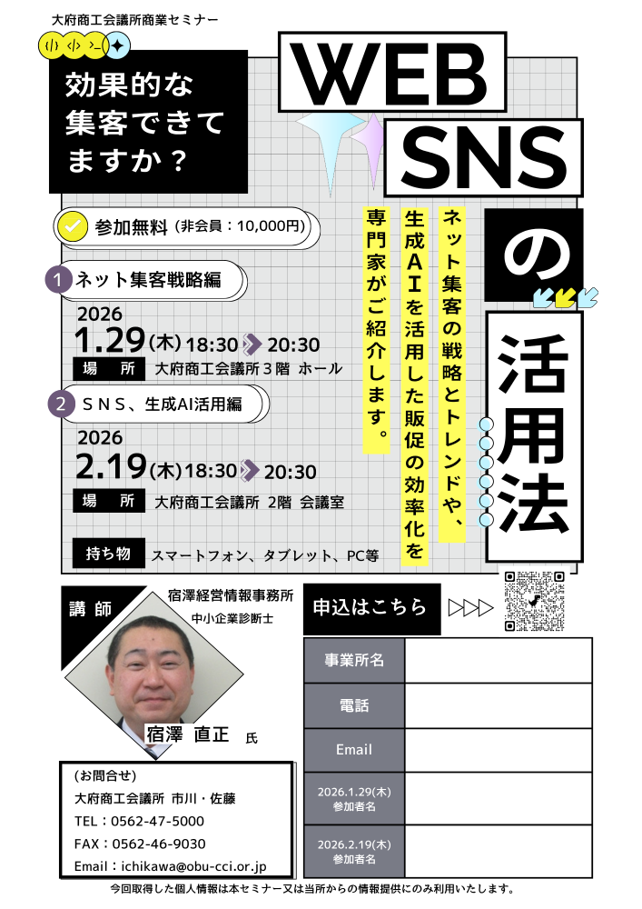 2026年2月19日(木)18時30分~20時30分【SNS,生成AI活用編】
