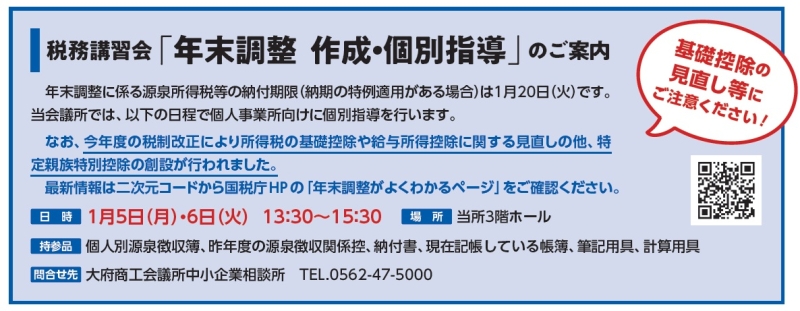 年末調整作成個別指導(1月5日(月)、6日(火))