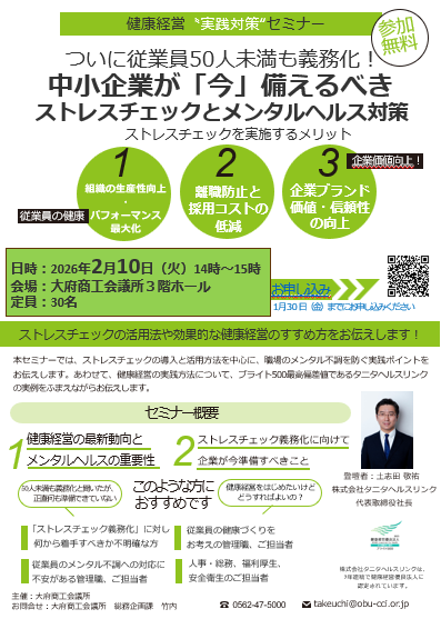 ストレスチェックの準備ができていない事業所様、健康経営を始めてみたい事業所様、ぜひご参加下さい。